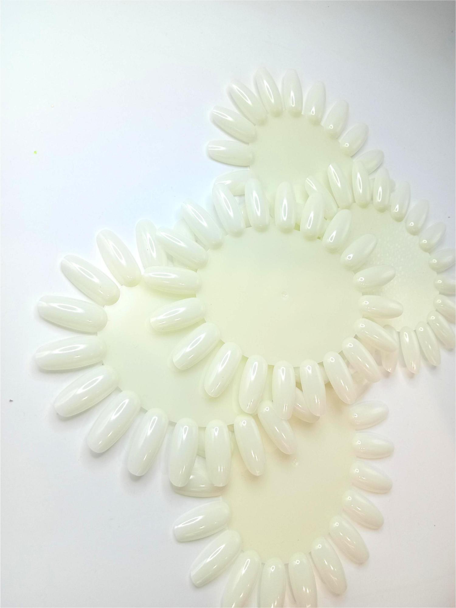 Пластиковая палитра для демонстрации цветного покрытия ногтевой пластины овальной формы. Рассчитана на 20 цветов. Компактный размер, удобная форма. Размер: 13*11см. Цвет: молочный. Форма: миндаль